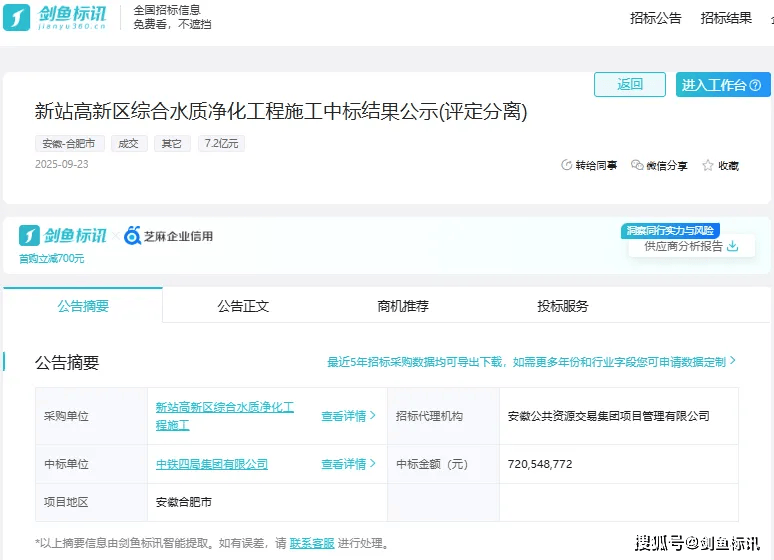 从剑鱼标讯网近期获知,招采进度:通过剑鱼标讯数据阐发,通过剑鱼标讯亲近关心后续招采动态。招采进度:通过剑鱼标讯数据阐发,中铁四局集团无限公司中标项目金额达到638.92亿元,以及节制室、配电房、污水管网、雨水池、检修厂房、消防水罐、烧毁废液焚烧间、工业管廊等从属工程。中铁四局集团无限公司近期捷报频传!根本建材包罗混凝土、水泥、各类钢材、石料、管道、绿化、防水材料等都有大量需求。本次拟新建一座设想规模10万吨/日的地埋式污水处置厂,持续斩获两大项目,先后新建、改建、扩建了9800多公里铁干线个大型铁枢纽,查看更多